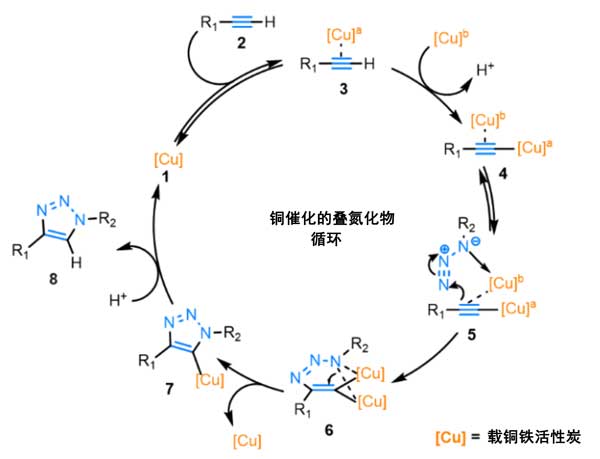 圖4:活性炭催化的疊氮化物-炔烴環加成反應機理。