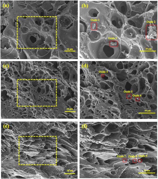 圖1顯示了活性炭載錳催化劑的表面微觀結構。在圖1a和b中,活性炭載錳5催化劑表面孔隙分布不均勻,周圍有少量顆粒。當Mn負載量為5%時,可以在催化劑指示的塊狀附著物中檢測到少量Mn。這表明催化劑成功負載Mn,但是,它的含量很低。圖1(c)和(d)中,活性炭載錳7催化劑表面光滑,孔結構發達,孔道明顯增加,表面顆粒分布均勻。這有助于催化劑吸附氣體。活性炭載錳7催化劑成功負載了中等含量的Mn元素,可以很好地改性活性炭。這些發現與圖3中脫硝曲線的結果一致。在圖1e和f中,活性炭載錳9催化劑表面粗糙,大小不一的孔隙分布不均勻,顆粒在表面局部堆積。這些因素堵塞了氣孔,抑制了脫硝。當Mn負載量為9%時,在催化劑表面檢測到大量附著物。高Mn含量表明Mn的過量負載可能導致催化劑表面21上的孔隙積累和堵塞(圖1e和f)。這可能是NO轉化率因負載過大而降低的原因之一。