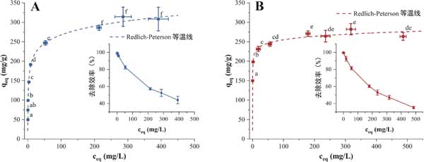 圖2:在(A)欖殼活性炭(B)活性炭上進行羥基酪醇吸附的吸附等溫線的實驗數據。
