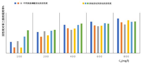 活性炭的制備在室溫下干燥之前,用蒸餾水洗滌,隨后進(jìn)行粉碎研磨處理并使用電篩篩分,以獲得63μm的均勻粉末粒度。所得粉末在使用電爐煅燒前用磷酸進(jìn)行化學(xué)預(yù)處理。根據(jù)特定比例添加磷酸來(lái)進(jìn)行活化,并在110℃的爐中干燥48小時(shí)。隨后將干燥混合物引入坩堝陶瓷中,在450℃下在爐中煅燒,使其孔隙逐漸打開(kāi)。用蒸餾水徹底清洗活性炭表面的活性殘留物,該步驟用來(lái)控制活性炭的pH。這樣得到的活性炭在110℃的烘箱中再次干燥48小時(shí)獲得成品。